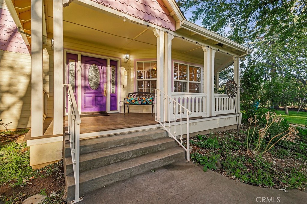 This dreamy estate has FIVE BEDROOMS and SIX-BATHROOMS and is a stately modern replica of an old VICTORIAN farmhouse. This beauty was built in 1992 and offers all the country charm without the headache of an older home. FIVE CAR GARAGE adds nearly 1500 square feet (this is additional in the 3757 house and if it were converted to living space the total would be over 5000 sf) for storage or your dream car collection, or a home business. 2 laundry areas, an office with its own entrance (could be a 2nd ground floor bedroom) and porch has ADU potential. Every bedroom has a bathroom. Newer dual HVACs (installed in 2022) even have individual thermostats in the bedrooms, so everyone gets to set their happy temperatures. Large array of OWNED SOLAR nearly zeros out the power bills. Strong ag well and a residential well. Above ground pool with high-grade pool equipment. Sweeping lawns and herb gardens, gazebos arbors, arched bridges, maple, cedar, peach, apricot, orange, plum, persimmon and pomegranate provide year-round harvests. Playset, dog kennel, and various fencing panels and supplies await your farmyard dreams. Come rock on the beautiful wooden porches and look out over this lush private bountiful oasis. Custom Chef's kitchen designed to feed a large happy crowd, Hardwood floors, marble fireplaces, 2 living rooms and formal dining plus a welcome desk from when this was a famous bed and breakfast make for so many possibilities--multi-generational living or perhaps a farm school (if zoning permits). The massive garage would make a great rec room or learning center. A GROUND FLOOR PRIMARY BEDROOM and 4 more primary bedrooms upstairs offer tons of privacy with lovely shady views of the orchard and grounds. Horses welcome. Can you find the horseshoe pits?
